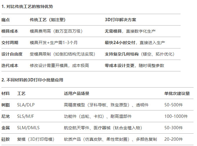 二、为什么选择3D打印进行小批量制造?